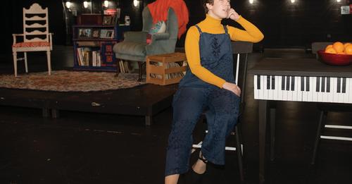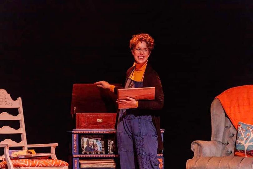 Louise Keeton, who stars as the otherwise unnamed Narrator, quickly established a rapport with the audience at Sunday’s matinee. The script calls for audience participation, and Keeton flows seamlessly from narrating the play to performing the role of the daughter, calling on various audience members to join her onstage for coached or spontaneous roles as the family Veterinarian, her Dad, a university Lecturer, her college boyfriend (and later husband) Sam, and her elementary school guidance counselor Mrs. Patterson. Keeton is so engaging that no one refused her offer to join her onstage. Some were given lines, others were required to improvise, and it all came together to create theater magic.