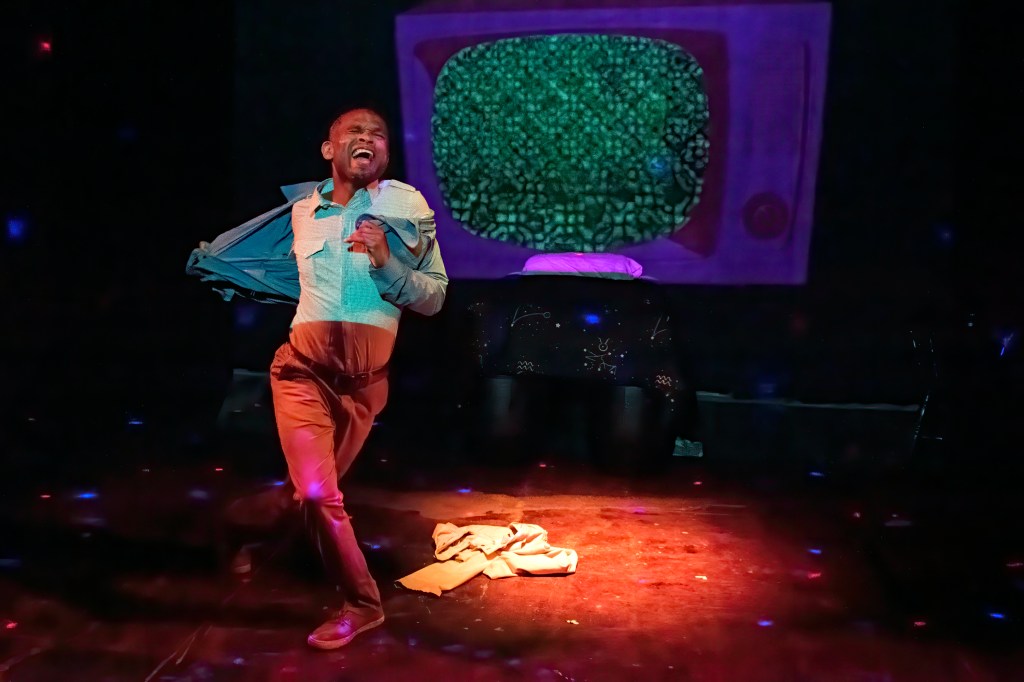 Patterson strips for us, and dances with a manic energy that reflects his character’s inner landscape. But as much as I was impressed by Patterson’s performance, this is truly an ensemble production – starting with the symbiotic directing team of Deejay Gray and Katrinah Carol Lewis. I’ve seen each of these actors in several productions, and this one cast them each in a new light and presented them with new challenges.