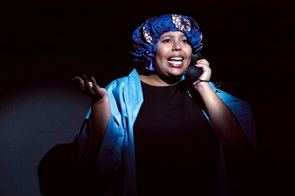 In the second act, Tyre portrays Sutter’s grandmother who offers him comfort in a time of need as she slyly extracts some cash to tuck into her bosom and a delivery of forbidden soul food. For a moment, I thought Tyre had been speaking with my own late grandmother to develop this character because his mannerisms and speech brought back memories directly from my own past. And that is part of the beauty of this play: it is relatable. In a post-show talkback the day I saw it, everyone who spoke found some point of connection. The scene where Sutter realizes he is under stress is a turning point – he stops the show, has a verbal interaction with the Stage Manager, Crimson Piazza, and the tone and tenor of the play shifts. This is , undoubtedly, one of the author’s genuine auto-biographical moments. Its poignancy highlights the humorous aspects of the previous scenes, and reminds us that often laughter is the only things that helps us make it through the tough or uncertain times.