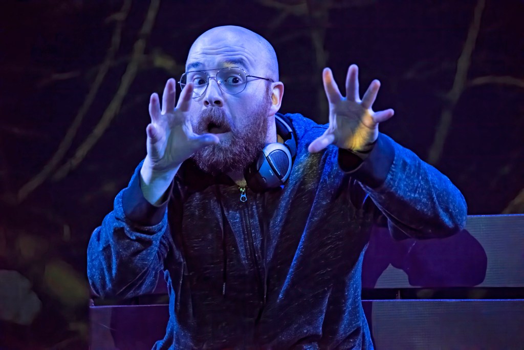 Todd Patterson shines in the lead role as Sutter. The five actors are identified only as Actor One, Actor Two, etc., and all but Patterson take on a number of different roles in Sutter’s life. Patterson dances between each scene – indeed, his “grandmother” and other relatives request that he “do that step Michael Jackson liked to do.” The playwright, O’Hara, has specified that Jackson’s music be used throughout, and the music of Michael Jackson, Prince, and perhaps a few others energizes the space from the moment you walk through The Basement doors.