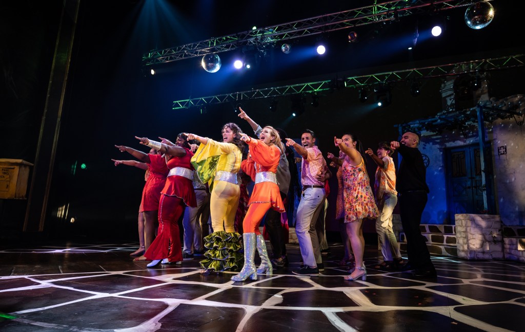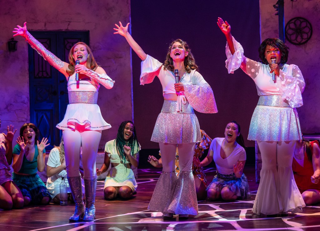 Some shows are meant to tell a story, some teach a lesson, some have a moral, and then there are those that are just pure and joyful entertainment. With its energetic and danceable music, familiar songs made popular in the 1970s by the group ABBA, and a stage filled with colorful costumes, throngs of dancers, and even dancing lights (thank you, Joe Doran), Mamma Mia! belongs to the latter category.