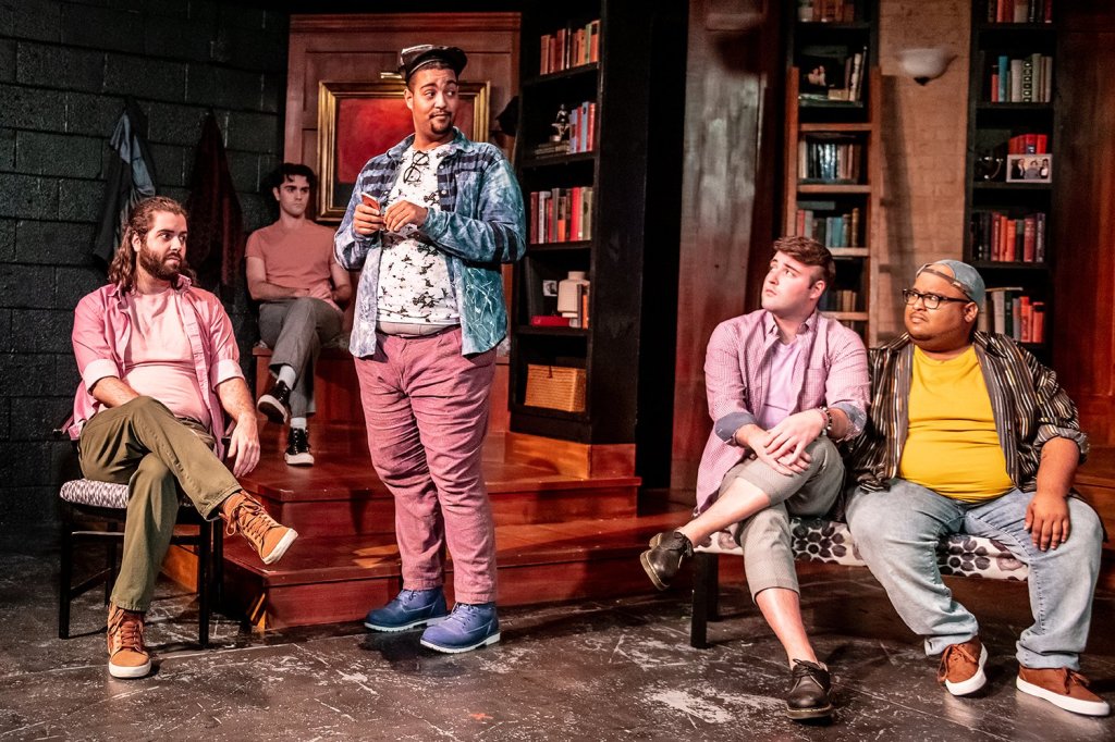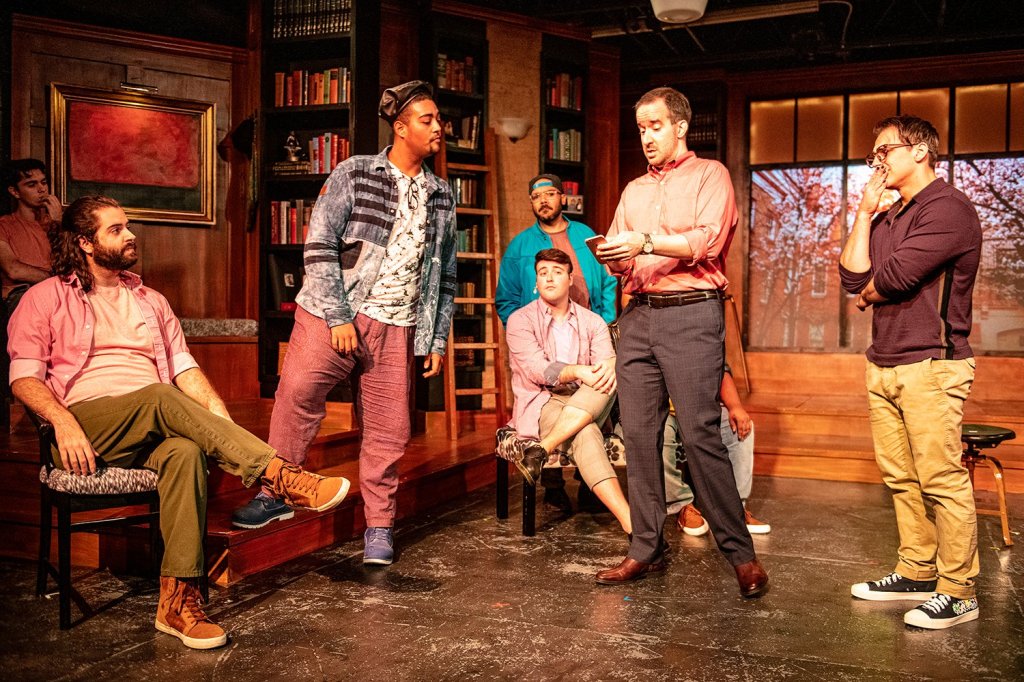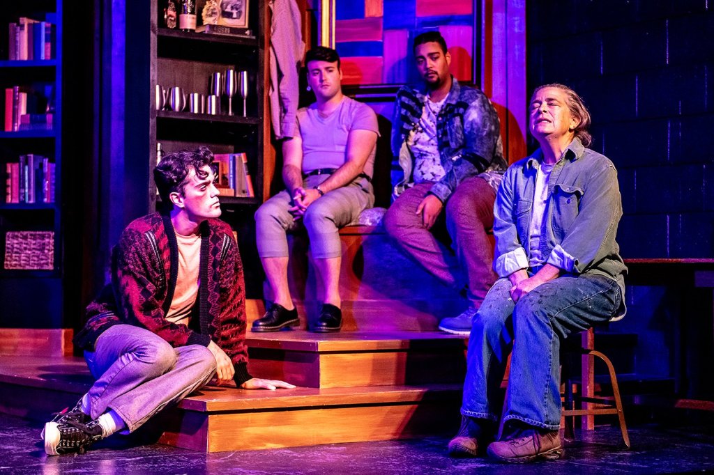 Further, it is a multi-generational story, under the guidance and mentorship of one older character (real-life author E.M. Forster/fictional character Walter Poole) played by William Vaughn, a recent Richmond transplant from NYC. There is also an older love interest, millionaire real estate developer Henry Wilcox, played with frustratingly rational conservatism by Eddie Webster. The Young Men (identified in the program by number, although they do have names during the play), are, in turn, a bridge to the next generation. Ironically, the two younger gay men representing the next generation are played by a single actor, Lukas D’Errico, a rising junior in the Theatre Department at VCU. D’Errico, as Adam, is the recipient of a tangible inheritance, in the form of fame and fortune, while as Leo, a homeless sex worker, he is the recipient of a spiritual inheritance. One of the more stunning moments of a play that is not lacking in spectacle occurs when D’Errico has to portray a life-changing chance meeting and conversation between his two characters. Kudos to D’Errico and director Lucien Restivo for this.
