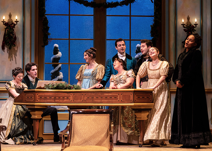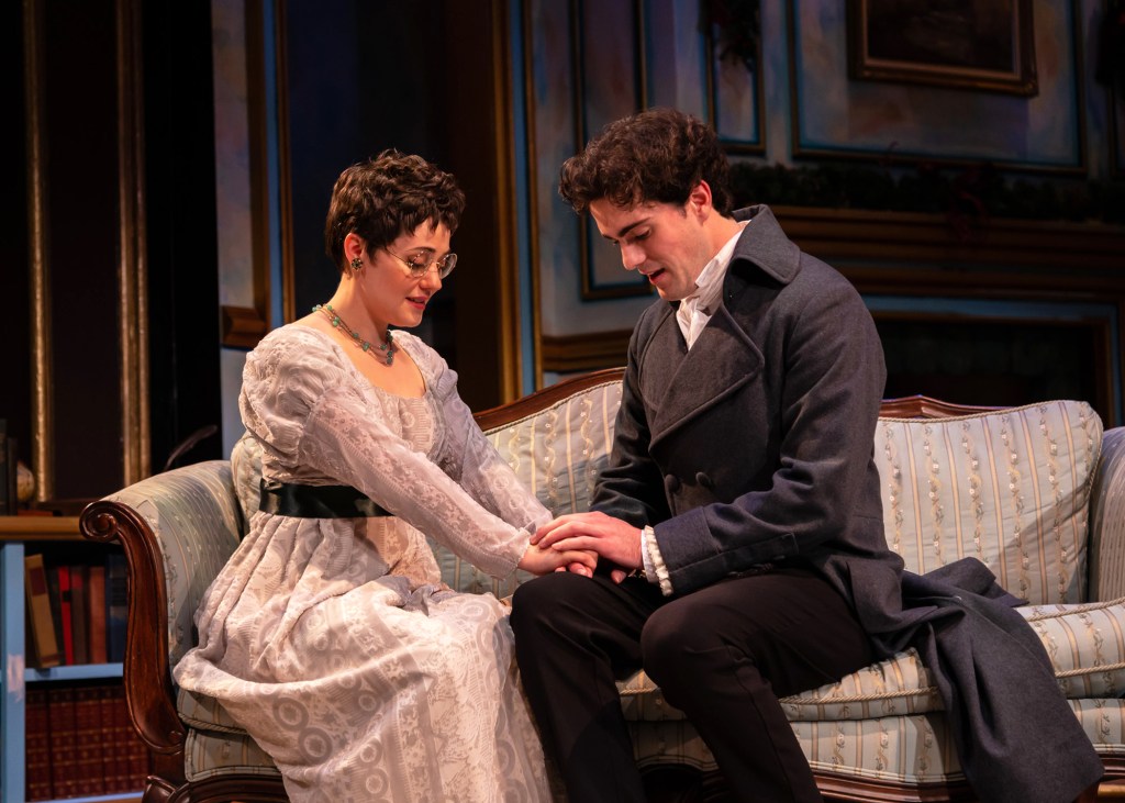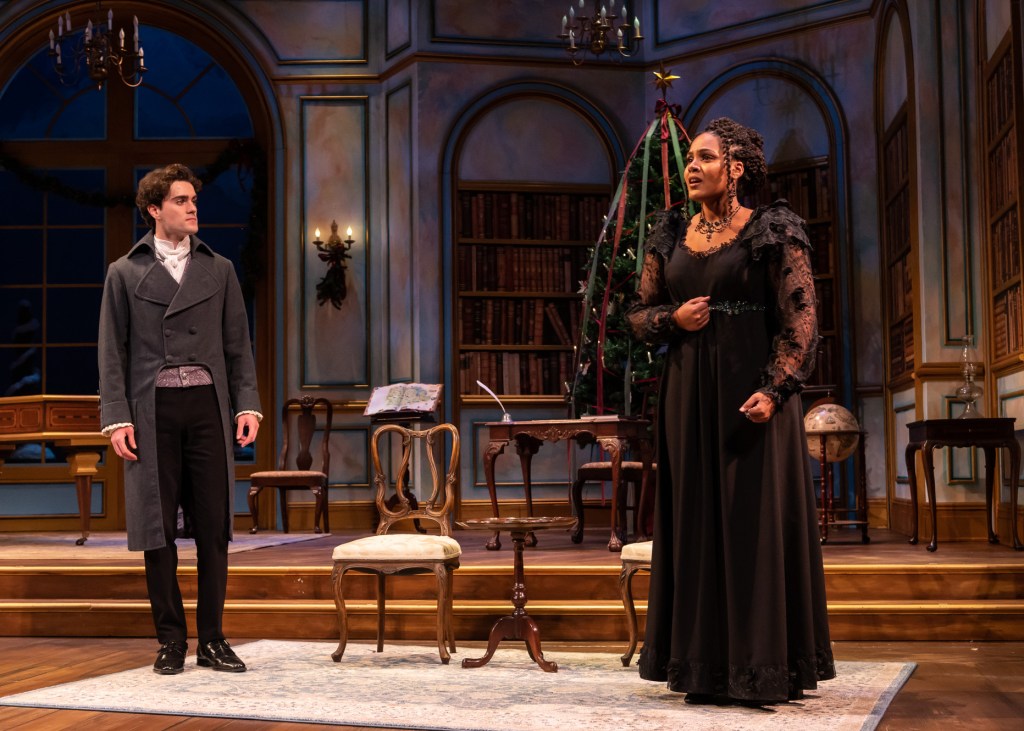 MISS BENNET: CHRISTMAS AT PEMBERLEY is like a Hallmark Christmas movie that came to life on stage: amusing, heartwarming, romantic, and predictable. The focus of Lauren Gunderson and Margot Melcon’s 2016 play is Miss Mary Bennet, the middle sister from Jane Austen’s Pride and Prejudice (1813). The bookish Miss Bennet, who is fast approaching the dreaded season of spinsterhood, accepts an invitation to spend Christmas with her happily married older sister, Elizabeth, and her husband Fitzwilliam Darcy at their estate – Pemberley.