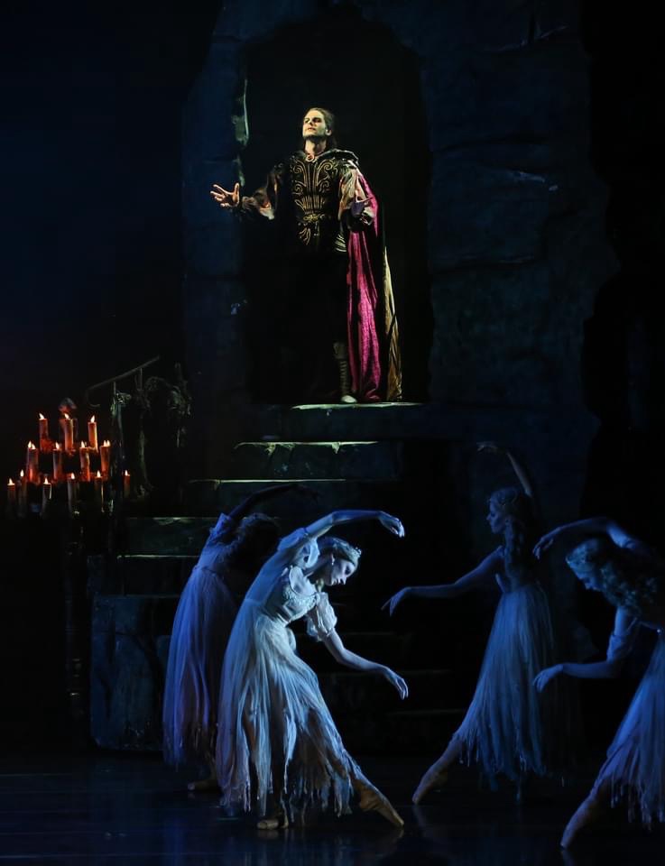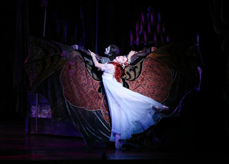 Finally, there was the ballet itself – a three act production (The Crypt, The Village, The Bedroom) running approximately two and a half hours, including two intermissions. Make no mistake, Dracula is, indeed, a ballet in the traditional sense. There is plenty of classical technique, including pointe work, and partnering. The second act, set in an Eastern European village, includes the familiar characters (an innkeeper, a matriarch, a pair of innocent young lovers) and peasant costumes and folk dances that populate many story ballets.