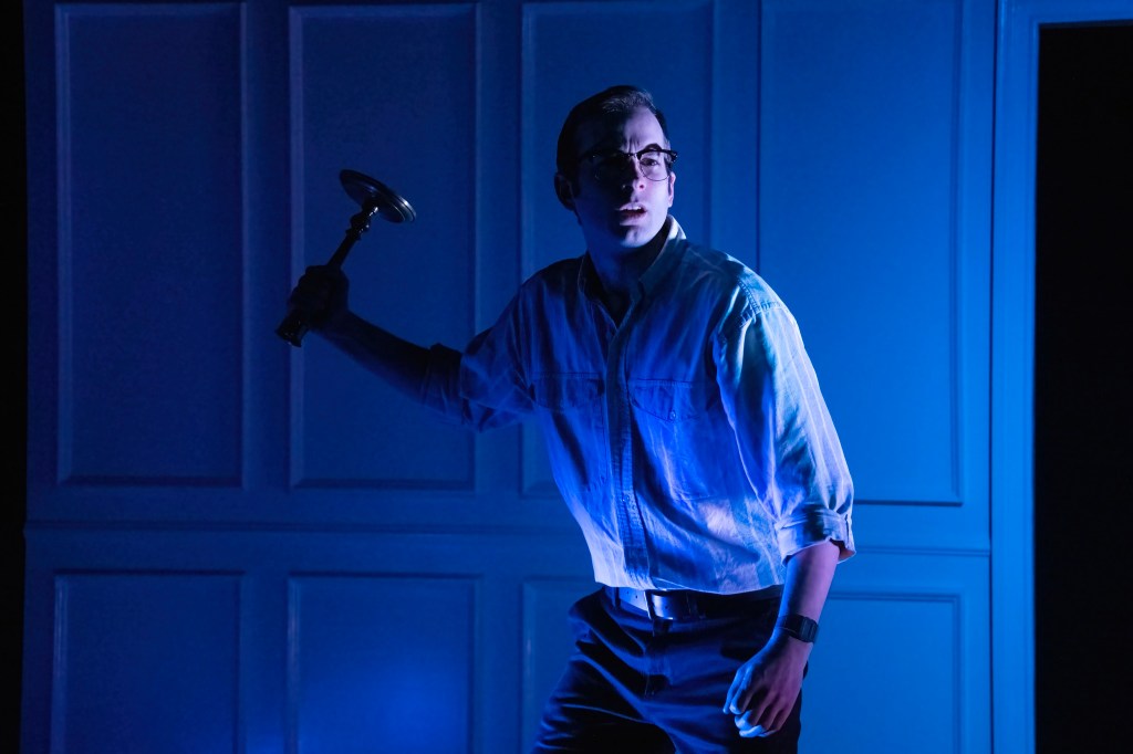 The problem is, there is no smoothing over the family trauma that fuels Jack’s family and bleeds into his present. The masks we wear are symbolically represented in Chris Raintree’s stunning set. It starts off as a cartoon caricature of a home, centered around the kitchen – the metaphorical heart of every home. In act two, the mask is removed to reveal the real kitchen of Jack’s childhood home, and begins to cover the source of his family’s dysfunction. Hubbard calls this act “A Family Home (without a family). For the third act, the mask is returned, but there are cracks in it, and bits of reality peak through. This is “A Performance, A Reckoning. All of it. All together. Now.”