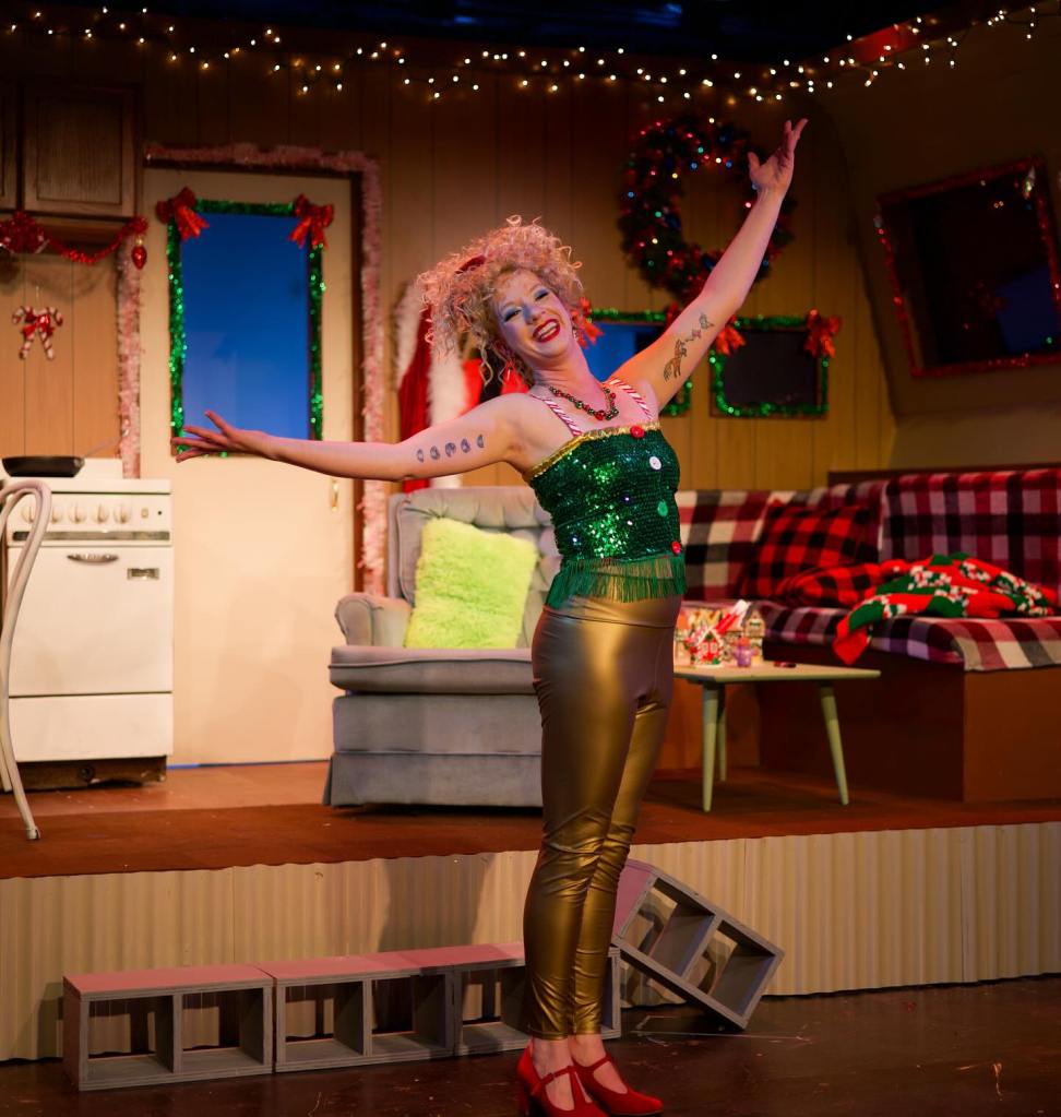While this was a true ensemble, there were a few who stood out to me. Reese Bucher as Spawn, a newcomer in the character she played as well as on this stage, brought a genuine freshness and energy that that exploded off the stage and landed like glitter on her cast-mates. Likewise, Keaton Hillman in the role of McKnight, whom I’ve had the pleasure of watching develop as a theater artist on various Richmond stages over the years, gave a seamless performance in a role that seemed to have been written expressly with him in mind. Not to mention, seeing his lanky frame rocking bootie shorts and a propeller beanie was hilarious.