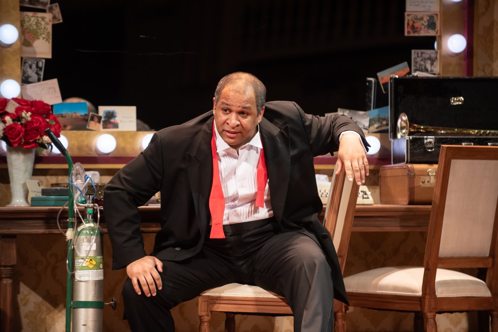 Kudos to the creative team, starting with director Deejay Gray (I could feel his hand in Daigle’s portrayal of Bobby). Luke Newsome’s hair and makeup were awesome, with a special nod to Mama Maria’s wigs and another hat tip to Amber Marie Martinez’ costumes (and the unseen hands that helped make all those lightning-fast changes). Maria’s outfits were so authentic…Lucien Restivo’s projections (assuming that includes the video work), Weston Corey’s lighting design, and Kelsey Cordrey’s subtle but effective sound design were all perfection.