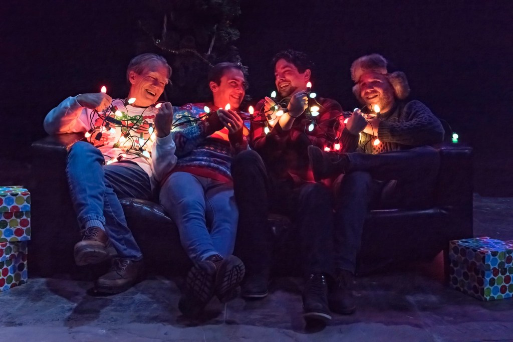 STRAIGHT WHITE MEN is not your traditional Christmas show, and it isn’t what you might expect from the Conciliation Lab – and those are just two good reasons to go see it. The cast of four white men – that’s two more reasons. And Marie and Lee, who execute the author’s and director’s instructions and make you think it’s their own ideas, all while wearing matching light-up shades and coordinating neckties – well that’s at least another two good reasons that make this production of STRAIGHT WHITE MEN worth your time and money.