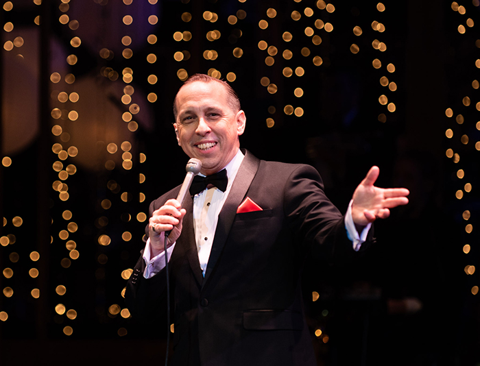 Larson wrote the book, music, and lyrics for what was originally a monologue, and later became a three-person show – the version we see today. Caleb Wade – who looks much more cheerful on the program cover than he ever looks during the show – plays the lead character, the author, Jon. Malcolm Holmes, making his professional debut, takes on the role of Jon’s best friend and roommate, Michael. Rachel Rose Gilmour shares the role of Jon’s girlfriend, Susan, with Mikaela Craft. We saw Gilmour on opening night. Holmes and Gilmour/Craft play multiple roles: an actor, Jon’s father, Jon’s elusive agent, and other minor characters. One significant character who never appears onstage is Jon’s musical theatre idol, Stephen Sondheim, whose name is only ever spoken in a hushed whisper, reminiscent of the custom of showing reverence by writing G_d…