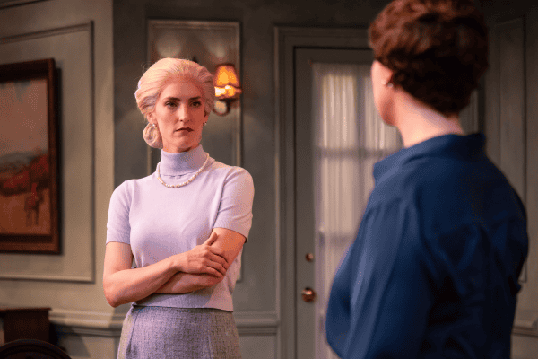 Matt Meixler plays Hector MacQueen, personal assistant to Ratchett/Cassetti, the murder victim. MacQueen is a master of misdirection, but he is the one who reveals Ratchett’s true identity to Poirot. If there was a female lead in Murder on the Orient Express, it would surely be Susan Sanford in the role of the obnoxiously loud, hard drinking, “ugly American” Helen Hubbard. Sanford hits all the stereotypes and mixes them with steroids, making us feel simultaneously horrified and amused by Hubbard’s shenanigans. Hubbard, by the way, has the compartment next to Ratchett/Cassetti, and there is a connecting door…