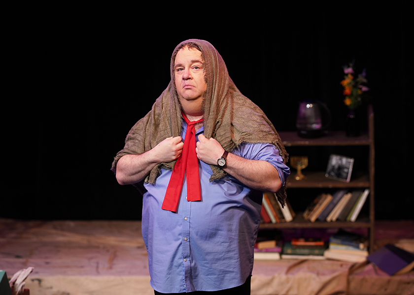 More than a biography, better than a documentary, O’Keeffe briefly immerses the audience into the world that created Georgia O’Keeffe. On a simply dressed stage – just a small desk, a chair, a basket on our left, a coat rack on our right, and a gigantic framed blank canvas upstage center – McDermott reveals her subject with reverence, humor, and love. To borrow a line from the script, McDermott “fills the space in a beautiful way.”
