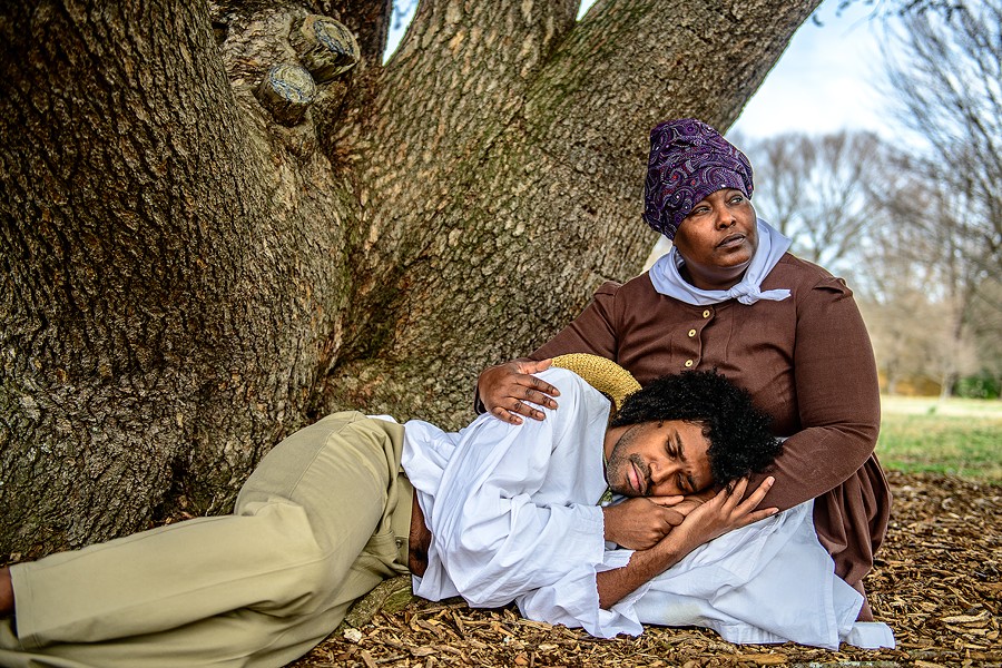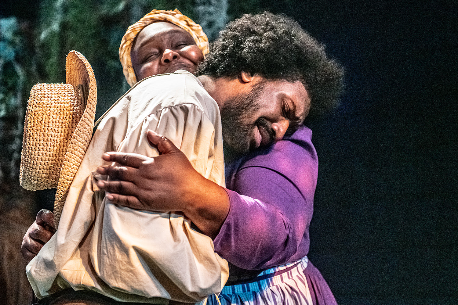 Dylan Jones and Zakiyyah Jackson hold down most of the female roles in Sutter’s life. Both play his mother, at different ages, as well as aunties, friends, a sister, and church ladies. In one scene they portray a quartet of women gossiping on the telephone, highlighted by rapid costume changes but my favorite is their second act “non-committal ceremony,” a nasty same-sex divorce officiated by a Zen-like Cashwell. This scene is the embodiment of the adage, “same sex, same problems!”