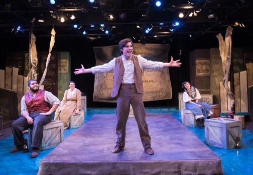 Previous Image Next Image Huck and Tom and the Mighty Mississippi James Hendley, center. Alvan Bolling II, Caitlin Sneed, left. Rachel Jones, right. Photo by Aaron Sutten.